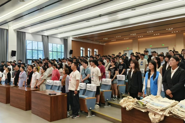 典礼现场,学生会主席团为毕业生献歌,随着动人的旋律,会场内弥漫着不舍与憧憬交织的氛围,大屏幕播放了毕业生们在校期间的精彩瞬间和成长历程的视频。这些视频如同一部时光机,带领大家回顾了他们在校园里的点点滴滴,那些欢声笑语、汗水与泪水交织的日子历历在目,让人深切感受到他们成长的喜悦和变化。