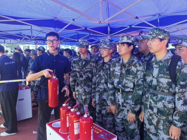 为强化新生消防安全意识,提升应急避险与火灾处置能力,9月22日,学校将消防安全教育深度融入新生军训体系,开展了一场集“理论教学、装备展示、实景演练”于一体的军训消防安全培训及演练活动,信息工程系全体25级新生积极参与,在实践中上好入学“安全第一课”。