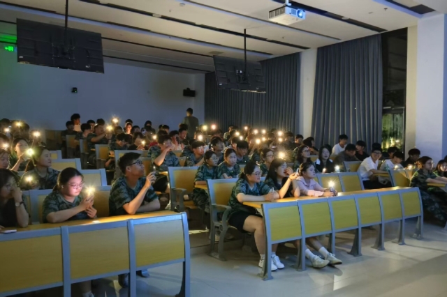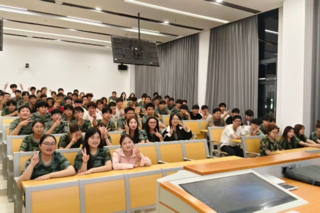 为保障军训节奏不中断、训练热情不减退,教官们结合实际灵活调整方案,晚训期间,组织信息工程系全体新生在勤学楼教室开展 “唱响军歌” 主题活动,用嘹亮歌声为军训增添别样色彩。
