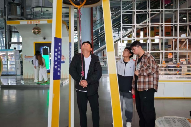 在科技馆专业讲解员的引导下,团学骨干们先后参观了 “探索发现”“科技与生活” 等主题展区。从经典物理实验装置到前沿智能装备,从能源开发技术到航天工程模型,讲解员结合展品背后的科学原理与发展历程,生动诠释了 “科技立则民族立,科技强则国家强”的深刻内涵。信息工程系团学干部李同学在互动体验区驻足良久,他表示:“机械结构与信息技术的融合展品让我深受启发,这正是跨学科创新的生动体现。”