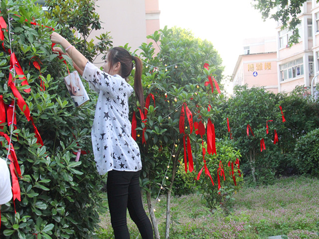 为给在校学生提供一个表达自身情感的平台。宿舍管理委员会于5月16日晚在学生公寓小花园举办了“许你之愿 梦存机电”为主题的宿舍文化节之许愿树活动。同学们把自己的心愿写在许愿带或卡片上,将其挂到许愿树上,倾诉内心的话语。