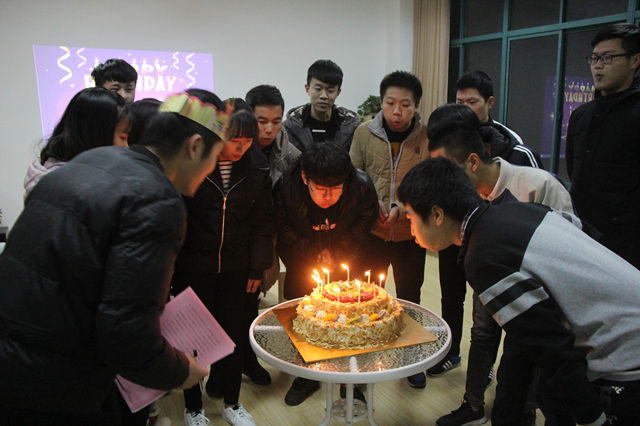 更大的惊喜还在后面,伴随着生日歌,一个大大的生日蛋糕由两名同学捧进来。原来,学院还给在本学期过生日的受助学生准备了生日Party,大家一起过生日、一起许下心愿、一起吹蜡烛、一起吃蛋糕、一起对着镜头说“开心”,留下合影。喜悦的心情都绽放在同学们的笑脸中,以后还有更多的“一起”一路走过。