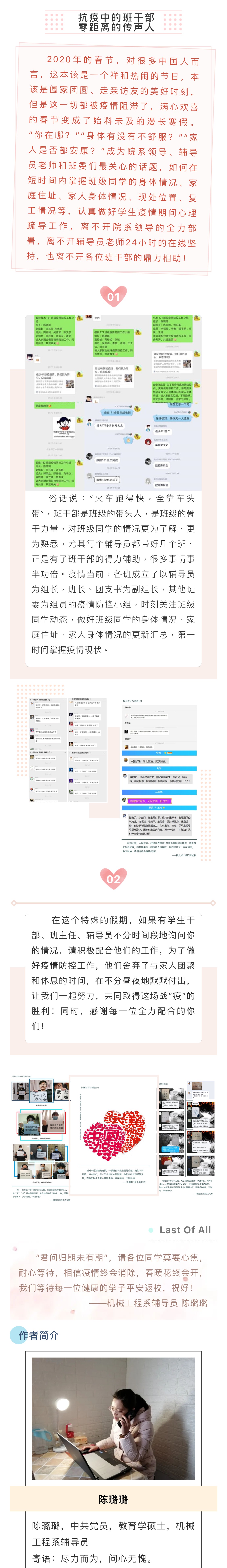 【辅导员特辑】机械工程系|陈璐璐:抗疫中的班干部,零距离的传声人