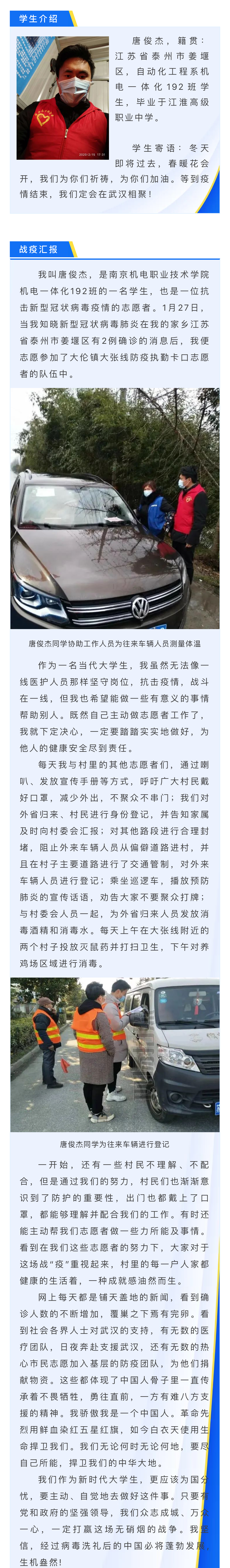 【学生特辑】自动化工程系|唐俊杰:齐心协力,抗击疫情