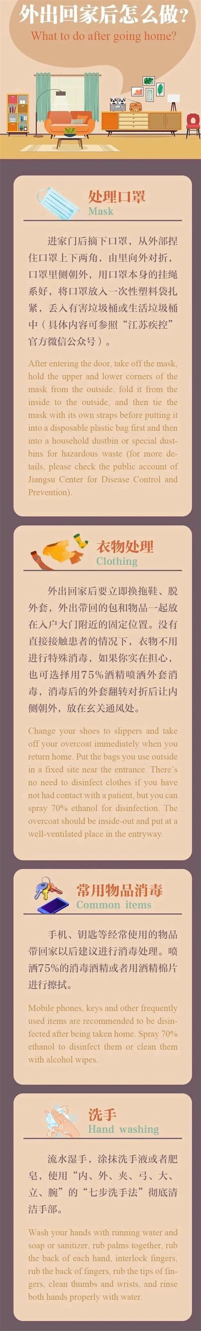 【防疫知识】“疫”图读懂(双语版):疫情防控期间,外出回家后怎么做?