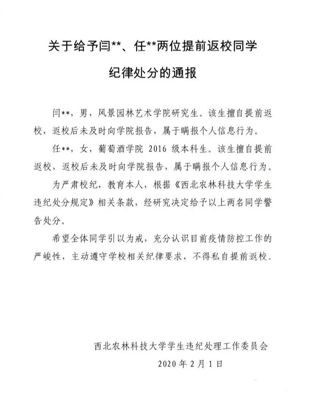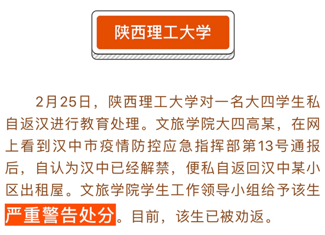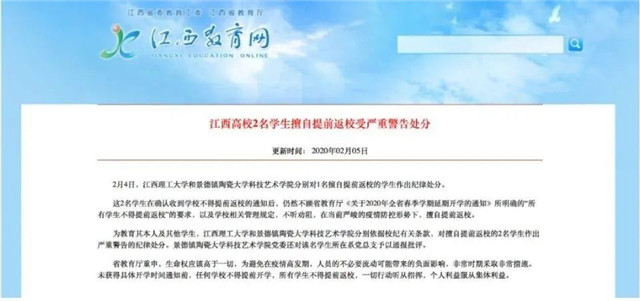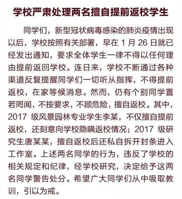 【防疫知识】警示!多名学生私自提前返校受处分!
