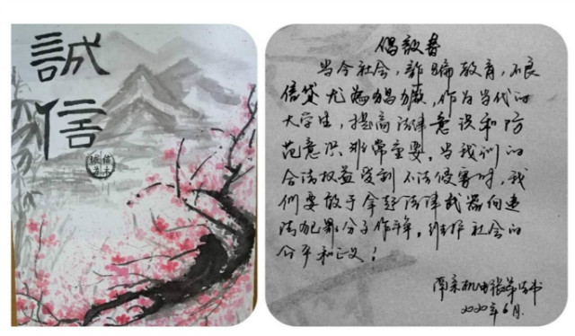 诚信二字,不只是常挂口头的时尚说辞,更是用实际行动来支撑的高尚道德。很多同学还以手抄报的形式,解释了诚信的意义,电信诈骗的危害,以此呼吁同学提高警惕的同时,更要懂得面对国家的优厚资助,要学会感恩,做诚信人。