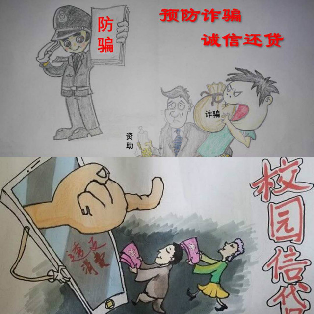 没有诚信,必定不能立人。想要立人,必先诚信。很多学生用彩绘和书法的形式表达出对此次活动的理解,并借此告诫同学们要远离诈骗,让诚信还贷、征信意识和金融风险防范意识入心入脑,及时履行国家助学贷款合同,生动形象地将诚信教育转化为大学生的自觉素养与行为。