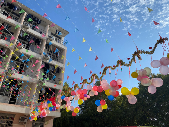 当然,迎新的过程中少不了宿舍这一个重要的部分。早早地,宿管会的成员就如火如荼地进行新生接待场地的装扮——五彩缤纷的气球拱门、妙趣横生的地面涂鸦,给新生带来一种莫名的熟悉感。当你踏进宿舍区时,热心的学长会接过你们沉重的行李,善良的学姐会在楼栋门口帮忙录入和登记,并且解答一些宿舍问题,真正做到了沟通零距离,沟通无差异。