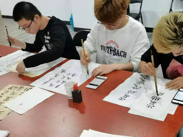书法比赛活动开始,机械工程系学生资助宣传大使张弟同学阐述了此次活动的目的和相关要求,并邀请院社团联合会书法社社长段慧琳及其他两名社员作为评审。活动过程中,书法社社长对参赛选手的书法作品和书写手法进行指导。