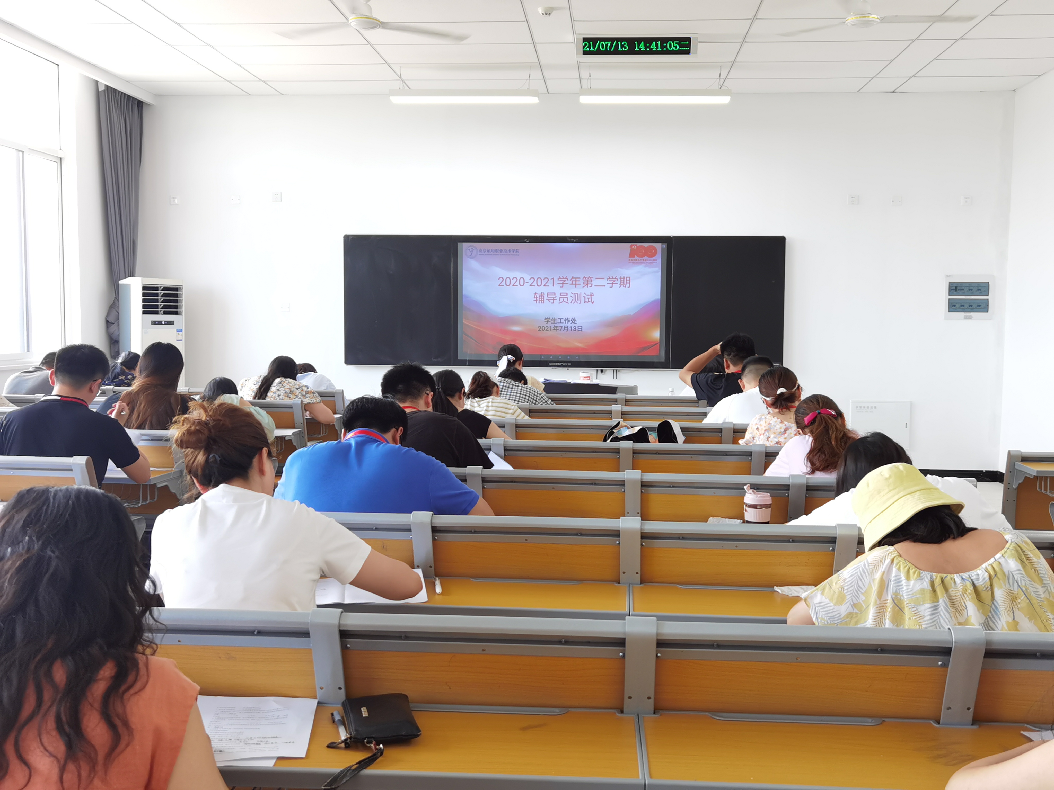 为深入学习贯彻习近平新时代中国特色社会主义思想,为进一步加强我校辅导员队伍建设,落实《2021 年辅导员素质能力提升专项活动通知》(南机电院学〔2021〕8号)要求,提升辅导员的理论水平、职业能力和专业素养,2021年7月13日下午,我校在博学楼305教室开展2020-2021学年第二学期辅导员测试,全体专职辅导员、各系学工干事、团总支书记参加考试。学校纪委副书记、党委工作部部长周启国、学工处处长张宝中监考。