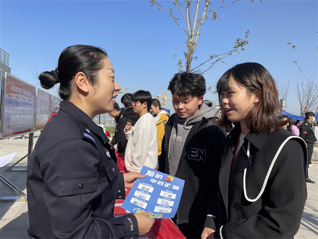 为增强我校学生尤其是21级新生对电信诈骗手段的了解,进一步提高在校学生的自我安全防范意识,增强全体学生防范电信网络诈骗的警惕性和保护个人财产权利的意识,2021年11月9日,学校学生反诈宣讲团在学校食堂小广场开展反诈宣传活动。本次活动邀请了高淳公安局反诈中心、古柏派出所的民警同志参加,通过多种反诈防骗宣传方式为新生筑起了一道防骗城墙。