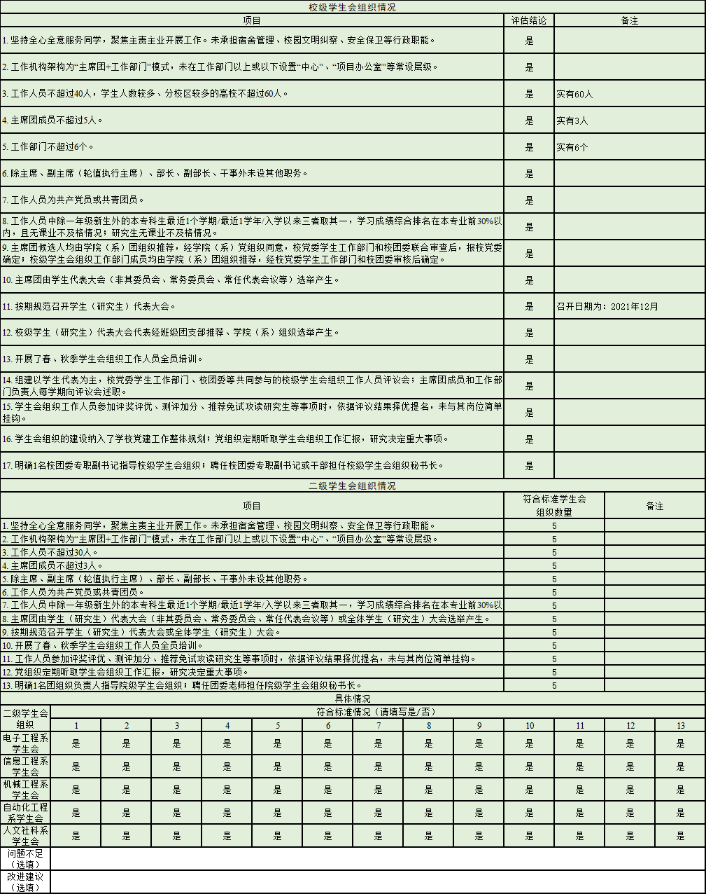 为落实共青团中央、教育部、全国学联联合下发的《关于推动高校学生会(研究生会)深化改革的若干意见》,接受广大师生监督,现将我校截至2021年11月学生会改革情况公开如下。