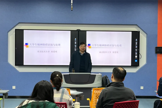 本专题邀请到南京医科大学马克思主义副院长郑爱明为大家讲授。郑院长现也担任南京医科大学附属逸夫医院临床心理科执行主任,他结合自身丰富的工作经历,用幽默的语言、生动的案例讲述了如何有效识别大学生常见的精神障碍。并就《精神卫生法》中有关法律法规进行一一梳理,从专业的角度提供了如何结合学校、家长、医院等资源共同帮助可能存在心理疾病或精神障碍的学生,为学生的生命安全和健康成长保驾护航。