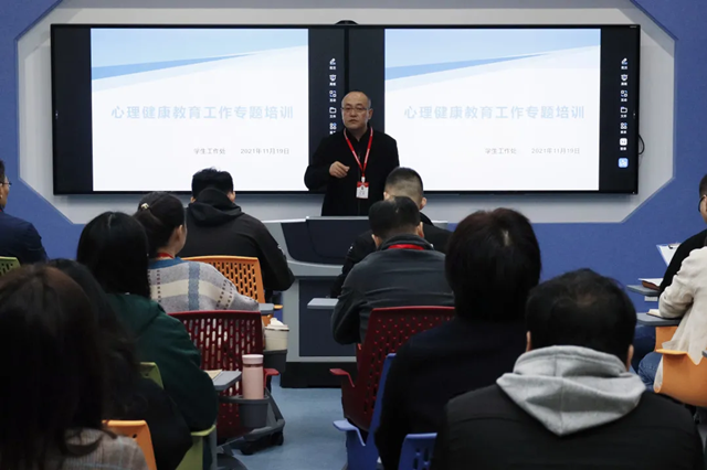 为贯彻落实《省教育厅关于加强大学生心理健康教育管理工作的通知》(苏教学函〔2021〕13 号)的文件精神,提升我校学生工作者的心理健康教育基本知识和技能水平,提高心理健康教育工作的针对性和有效性。2021年11月19日,学生工作处组织各系书记、学工干事、专兼职辅导员及宿舍管理员举办了心理健康教育工作专题培训。