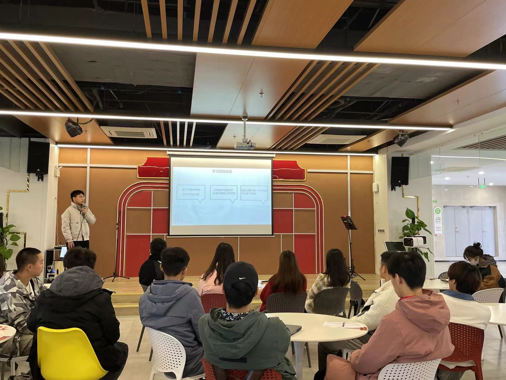 活动伊始,主讲人贾威同学围绕着自己的学习经验、学生干部经历、实践经历以及目标规划四个方面展开了分享。首先,他根据自己“每天坚持背单词回头看”的学习方法告诫同学们学习英语要常抓不懈,学会主动争取、把握机会,讲述了学生干部需要良好的自身素质;其次,他表示社会实践活动一定要认真对待,在活动结束之后宣传也尤为重要;最后,他提出了自己的目标规划:以党员的标准严格要求自己,争取早日进入党组织、积极参加各类比赛,为大三冲刺国家奖学金做准备。他以“乾坤未定,你我皆是黑马”为本次演讲画上了圆满的句号。