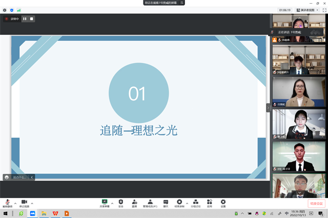 线上陈述环节,十三位候选人从学习成绩、社会实践、参加活动、获奖情况以及综合素质等方面详细汇报了自己入校以来所取得的各项成绩。评委对学生现场综合表现进行打分。最终根据60%的评审材料和40%的现场陈述总分排名前九的同学确认为国家奖学金拟获得者。