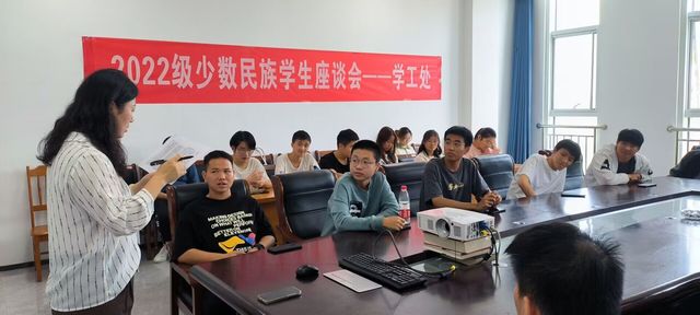 为深入贯彻落实习近平总书记关于“铸牢中华民族共同体意识”重要论述精神,加强与少数民族学生的沟通与交流,扎实开展民族团结进步宣传教育,2022年9月27日,在伟大新中国七十三岁华诞和党的二十大即将召开之际,学生工作处组织开展了“喜迎党的二十大,民族一家亲”2022级新生少数民族学生座谈会。全校来自12个民族的38名少数民族新生参加。学生工作处钱莉娇老师主持会议。