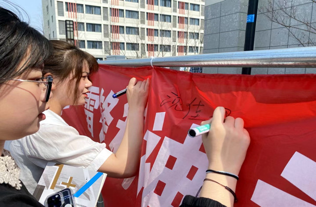 在活动的最后,我们举行了“雷锋精神传承”横幅签名活动。雷锋精神是当代中国献给人类文明的先进成果,它充分体现社会主义核心价值观的本质要求。习近平总书记深刻指出:我们既要学习雷锋的精神,也要学习雷锋的做法。横幅上满满的名字、满满的话语,是同学们积极响应“向雷锋同志学习”的号召。