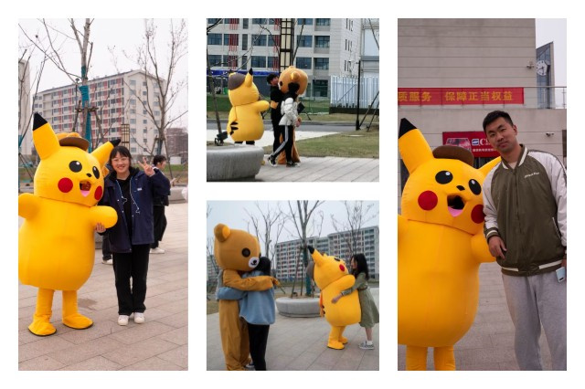 此次活动中,校学生会心协部同学穿上玩偶服与过往的同学们自由拥抱,给予陌生同学温暖。当可爱的皮卡丘和小熊出现在食堂门口,原本阴沉沉的天气也变得充满色彩。生活中总有些猝不及防的困难,但也总有不期而遇的温暖。相信温暖的拥抱能够治愈大家的疲惫。
