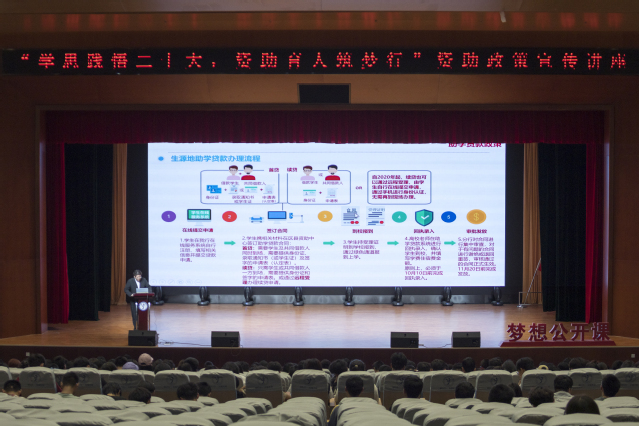 学生资助宣传大使机械工程系张赢珑讲解学生生源地助学贷款政策及征信知识。他通过简洁明了的流程图、操作图,分别将国家开发银行信贷政策、生源地信用助学贷款办理流程、助学贷款还款重要时点、还款类型、还款方式等内容进行了逐一讲解,强调了各项操作的注意要点和时间节点。他为在场同学普及了征信知识和诚信记录的维护,强调诚信的重要性。整场讲座内容详实、条理清晰,给在场的学生留下了深刻的印象。
