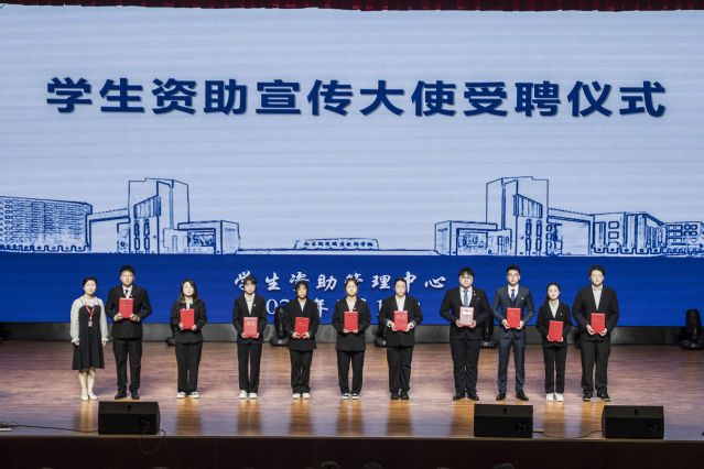 随后进行“学生资助宣传大使”受聘仪式。学生资助管理中心主任钱莉娇为第六届学生资助宣传大使颁发聘书。过后,新一届学生资助宣传大使集体宣誓:“勤学善思,做资助政策的学习者;播撒爱心,做资助政策的传播者;脚踏实地,做知恩感恩的践行者。我们一定不辱使命,砥砺前行,把资助政策带进更多困难学生家庭。”这铿锵有力的誓词,表达了他们励志成才、不辱使命、播撒爱心的决心。