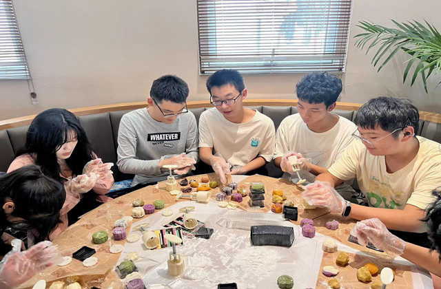 另一项传统活动月饼制作的开展也为同学们带来了满满的幸福感,中式月饼虽然没有西式点心的华丽,但是它体现了古人浪漫的风雅。豆沙、莲蓉、五仁、椒盐、枣泥……同学们自己制作的手工月饼不仅造型别致,而且美味可口。甜甜月饼,融融笑意,糕点虽小,心意却大,一角月饼一杯茶,尽是人间清欢。