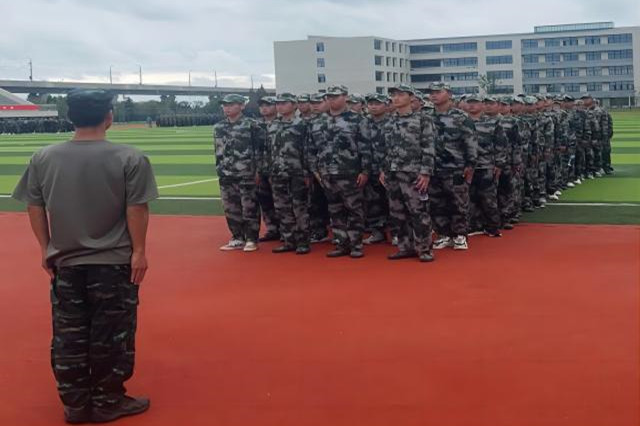 昂首挺胸、手贴裤缝,在炎炎烈日中磨炼意志,飒飒军姿彰显青春力量铁一般信仰、铁一般信念、铁一般纪律、铁一般担当。