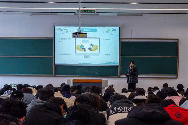 王宇阳首先向同学们讲述了大学生谈心谈话的技术和艺术并介绍了QPR技术。QPR是一个自杀预防策略,可以通过提问、劝导、转介三个简单易行的步骤,有效地防止自杀行为的发生。王宇阳同学在分享的过程中重点介绍了如何识别危机,锁定高危人群。随后,罗国柱同学为同学们讲解了QPR的劝导技术,并从六个方面详细介绍了谈访流程及注意事项。最后,汤阗瑞同学通过实际案例,向同学们展示了危机处理及干预的方法。通过角色扮演,模拟危机情境,让同学们更好地掌握应对技巧。