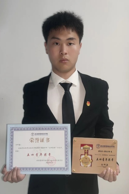 身为学生干部,他时刻践行“老黄牛”精神,他组织系部和班级按时召开信仰公开课,做好青年学生的思想引领工作。他总是能想同学所想,并及时帮助同学们解决困难,他认真并高效完成自动化工程系党支部和团委下发的各项工作任务,2022-2023学年上学期自动化工程系团总支对标定级为五星级团总支,同学年在学校的团委二级考核中荣获全校第一。在班级中,他积极完成辅导员老师分配的任务,按时召开班委会,总结班级中近期出现的问题并提出改正建议,通过辅导员老师的悉心指导以及班级各个同学的齐心协力,机电217班团支部最终荣获“五四红旗团支部”,同时他连续两学年被评为校级“优秀共青团干部”,并荣获了学校“五四青年奖章”和自动化工程系团总支“优秀个人”荣誉称号。