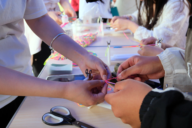活动期间,同学们收获满满,额头上画着驱邪图案,腰间佩戴着香薰片和香囊,手腕上戴着五彩色手绳,持一把自制漆扇,与同学在棋桌旁博弈,将传承文化发挥得淋漓尽致。