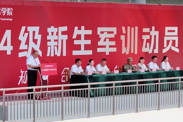 学校党委副书记、副校长赵学洪,全体军训教官,各系部党支部书记,学生教官,2024级全体辅导员及新生参加了动员大会。