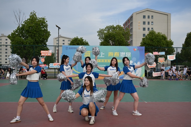 观众的热情如炽热火焰,编织成力量的声浪,紧紧包裹赛场,让球员们沐浴在沸腾的激情之中。在中场休息时,啦啦操队为在场的同学们带来了精彩的表演,动感的旋律震撼心灵,炫酷的舞步照亮全场,她们动作整齐划一,活力四射,霎时将场上氛围点燃至沸点。
