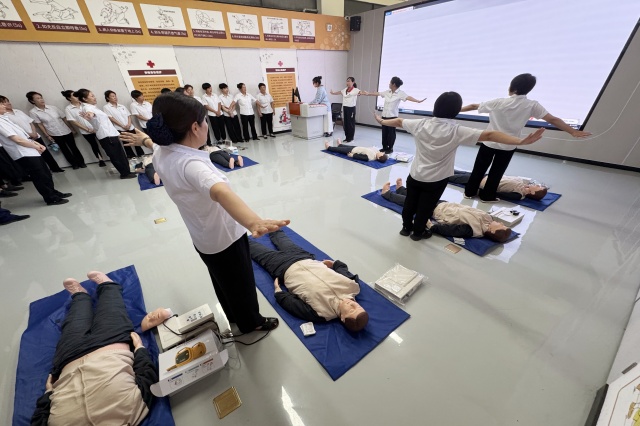 培训过程中,红十字会讲师结合真实案例,深入浅出地阐述了心肺复苏的急救意义、适用情境与操作原理,重点讲解了意识判断、呼吸识别、胸外按压、开放气道、人工呼吸等CPR全流程技术规范,明确强调了“按压深度5~6厘米、频率100~120次/分钟”等关键技术指标。在AED使用教学环节,讲师现场演示了设备开启、电极片贴附、心律分析与电击除颤等操作步骤,并突出强调“黄金四分钟”内迅速获取并使用AED的重要性。