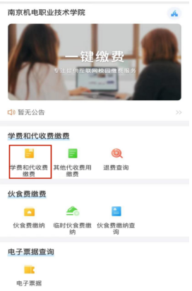 5.在“费用查询”界面,输入考生姓名和身份证号(学号不填),点击“查询费用”,进行缴费。