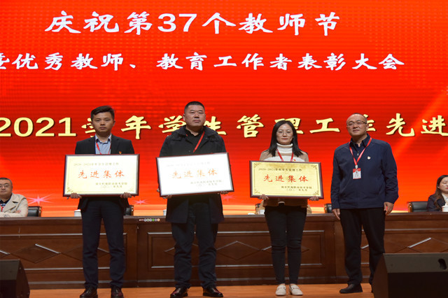 10月21日下午,学校在报告厅 召开庆祝第三十七个教师节及优秀教师、教育工作者表彰大会。全校教职工参加会议,大会由党委副书记、纪委书记、副院长陈赵主持。