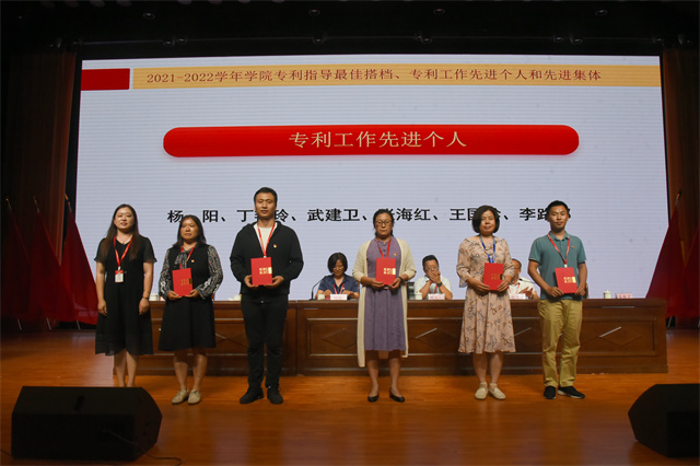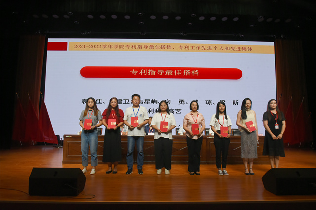 会上,我系获得“专利工作先进集体”、“三创”大赛优秀组织奖、“学生管理工作先进集体”多个荣誉;我系袁佳、武建卫老师获得“专利指导最佳搭档”称号;丁艳玲、武建卫、张海红、潘久伟获得“专利工作先进个人”称号;于靖欢、潘久伟获得“学生管理工作先进个人”称号;俞青获得“优秀辅导员”称号;邢子然获得“优秀教育工作者”称号;丁艳玲、吴芬、袁芬获得“优秀教师”称号;此外,袁芬、丁艳玲作为校外综合管理和技能竞赛获奖代表上台领奖。