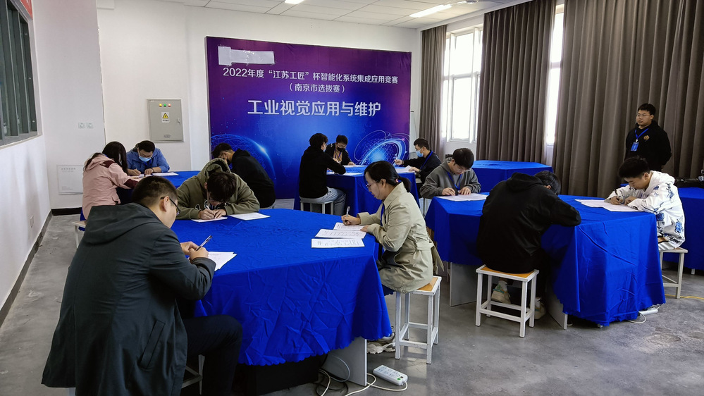 2022年度“江苏工匠”杯智能化系统集成应用竞赛(南京市选拔赛)鉴于目前南京市疫情现状,各区防控形势严峻,本次竞赛采用主会场+分会场形式,主会场为江南网页版,分会场为各参赛单位。裁判通过线上对赛场环境、竞赛流程、裁判判分、应急处理等做了周密部署,确保了本次比赛公平公正。经过为期两天的实操、理论比赛,由我院智能制造系统集成和工业视觉应用维护两个赛项的教师组和学生组四支参赛队伍以南京赛区第一名的成绩,顺利进入省赛。
