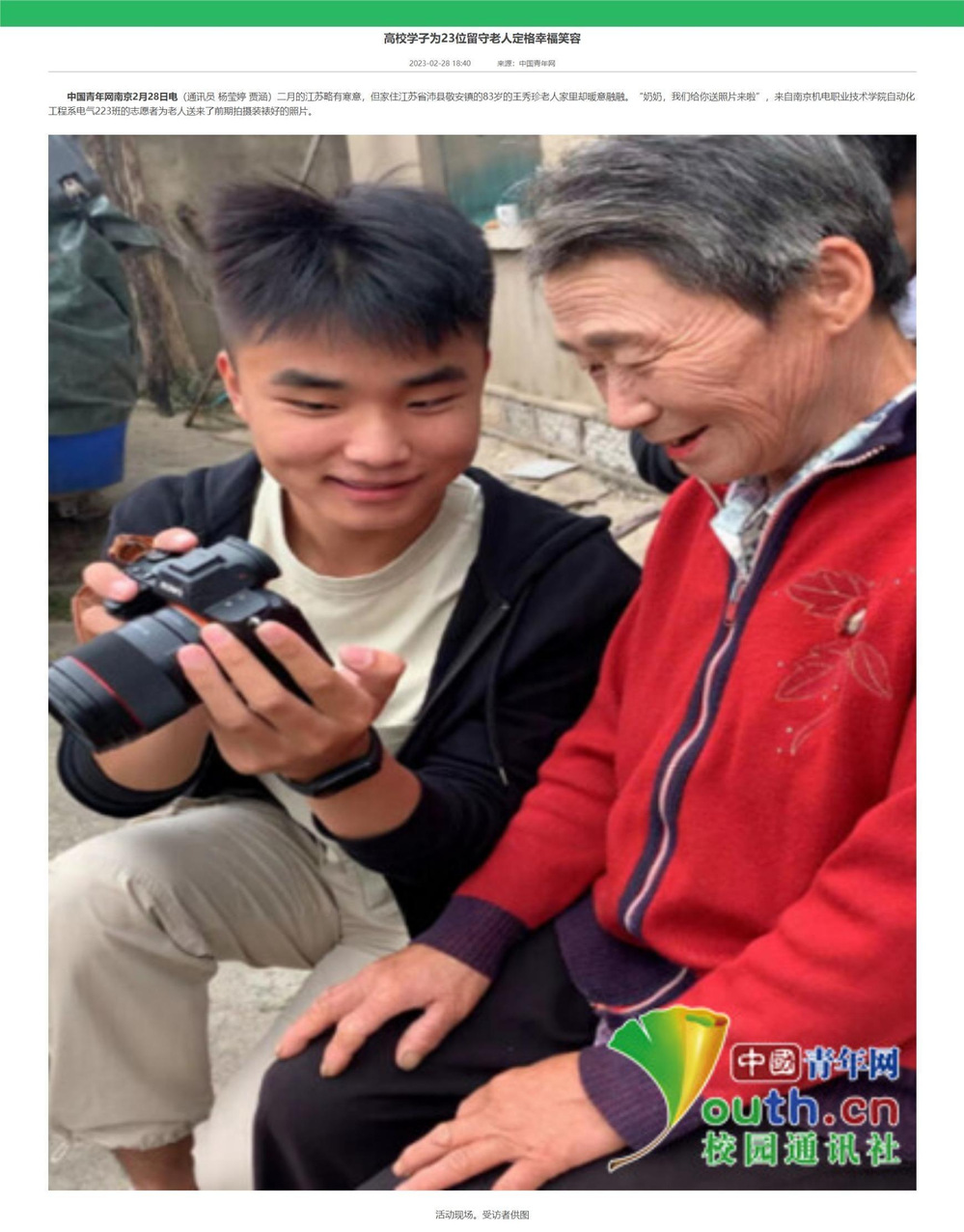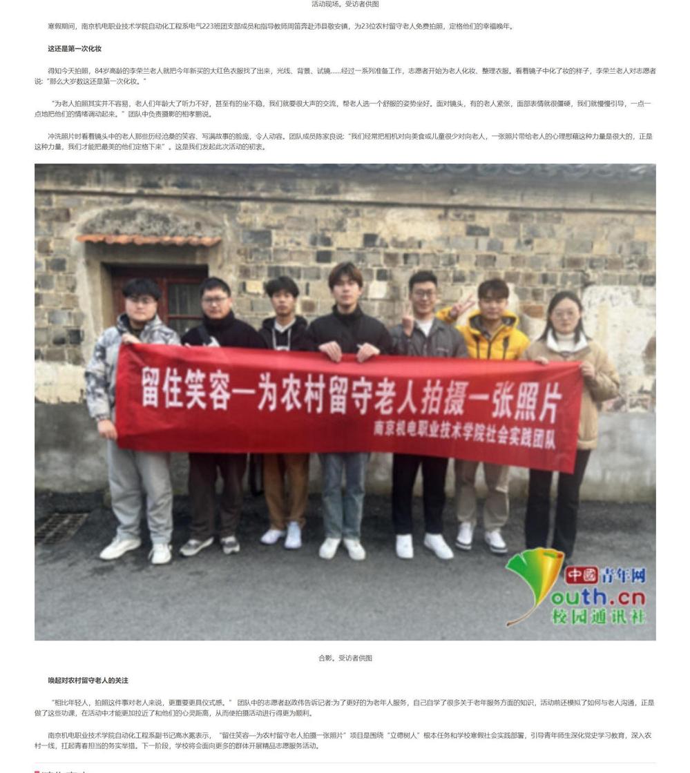 我系周笛老师带领学生开展的“留住笑容——为农村留守老人拍摄一张照片”精品志愿活动,被中国青年网报道。