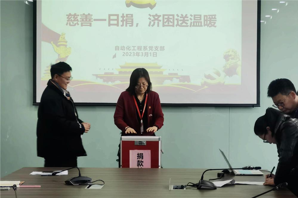 进一步推动慈善事业发展和社会救助工作,按照南京市政府《关于促进慈善事业健康发展的实施意见》关于开展“慈善一日捐”活动的要求,3月1日中午,自动化工程系党支部在育德楼303开展“慈善一日捐、济困送温暖”的爱心主题活动。