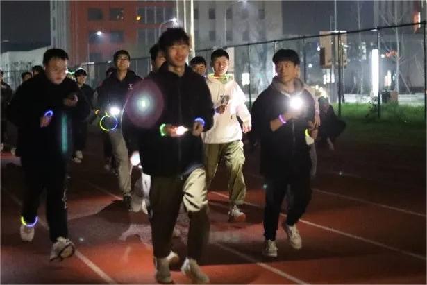 虽然夜色已深,但参与者的热情丝毫未减,怀着愉快的心情,戴上荧光手环,身披夜色在操场上肆意奔跑,星石点缀,荧光闪烁,青春的光芒点亮了整个夜空!