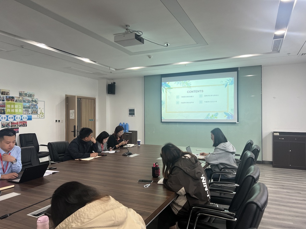 本次研讨主要从两个方面进行。一方面是如何丰富团支部活动,周老师通过列举四个活动主题,确定了16种班级团支部活动内容,并根据目前学生开展情况进行汇报;另外一方面是如何提高学生活动参与积极性,周老师通过与学生干部交流反馈,提出四点解决措施以激发学生参与活动的热情,充分发挥班级团支部活动的育人实效。