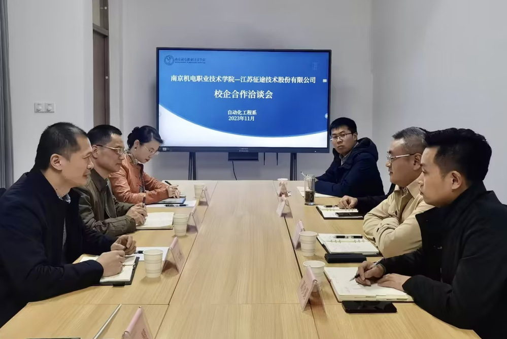 11月16日下午,江苏征途技术股份有限公司执行董事孙玉林、李国峰一行4人到江南网页版调研,洽谈校企合作。江南网页版党委委员、副校长刁爱军会见企业代表,自动化工程系副主任顾晟吉、专业教师唐建伟参加座谈会。自动化工程系党支部副书记高水冕主持座谈会。