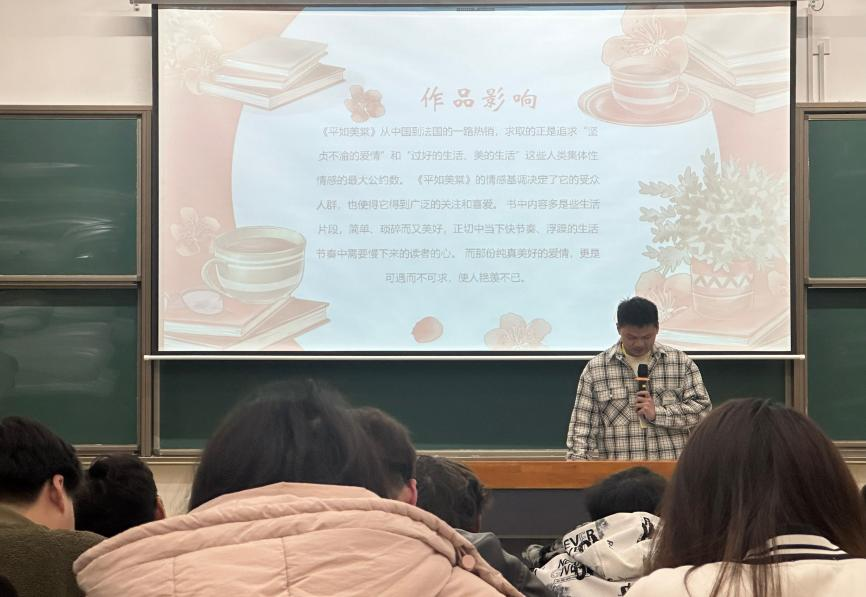 沐浴书香,香溢校园!为引导学生养成爱读书、读好书、善读书的习惯,自动化工程系于3月14日在勤学楼 105 开展第十四期读书分享会。分享者林天琪向同学们分享了书籍《平如美棠》。自动化工程系学生组织骨干、各班级班长、辅导员代表参加了此次活动。