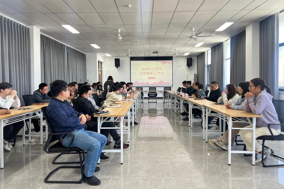 3月29日,自动化工程系在敏行楼401召开全体教职工大会,宣布学校党委关于自动化工程系党支部主要负责同志调整的决定,杨军同志任自动化工程系党支部副书记,主持支部工作。党委副书记、副校长赵学洪,党委工作部副部长高水冕,自动化工程系主任张海红、党支部副书记杨军、副主任顾晟吉出席会议,会议由张海红主持。