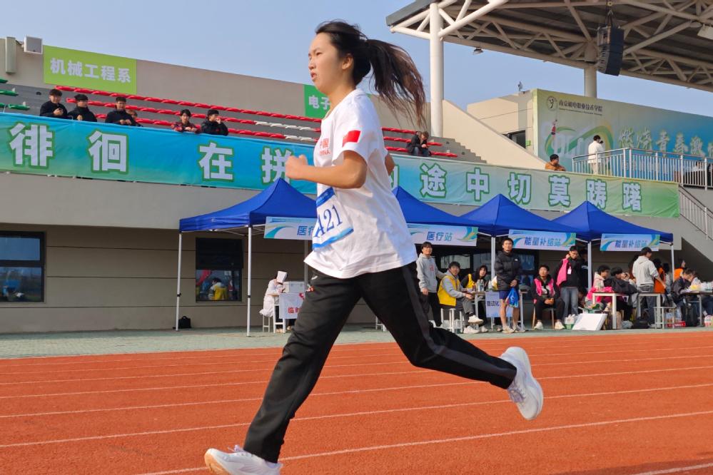 中长跑比赛里,我系运动员们展现出了坚韧不拔的毅力,迈着沉稳的步伐向终点跑去,哪怕汗水湿透了衣衫,哪怕体力逐渐透支,也没有轻言放弃,始终咬牙坚持。