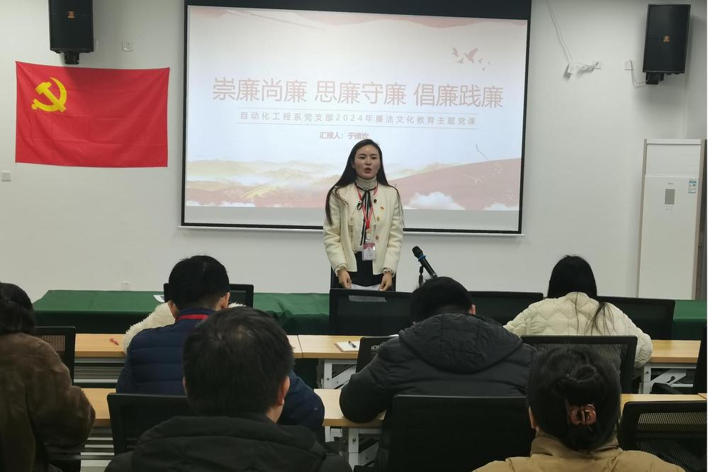 为深入贯彻落实全面从严治党工作要求,推进党风廉政建设和反腐败工作向纵深发展,切实增强党员廉洁自律意识和拒腐防变能力,进一步加强师德师风建设,提升党员教师的廉洁自律意识,12月5日,自动化工程系党支部在敏行楼401开展“党风廉政暨廉洁文化教育”主题党日活动。