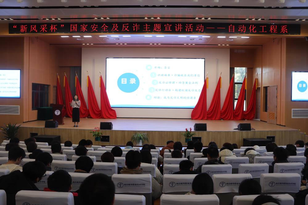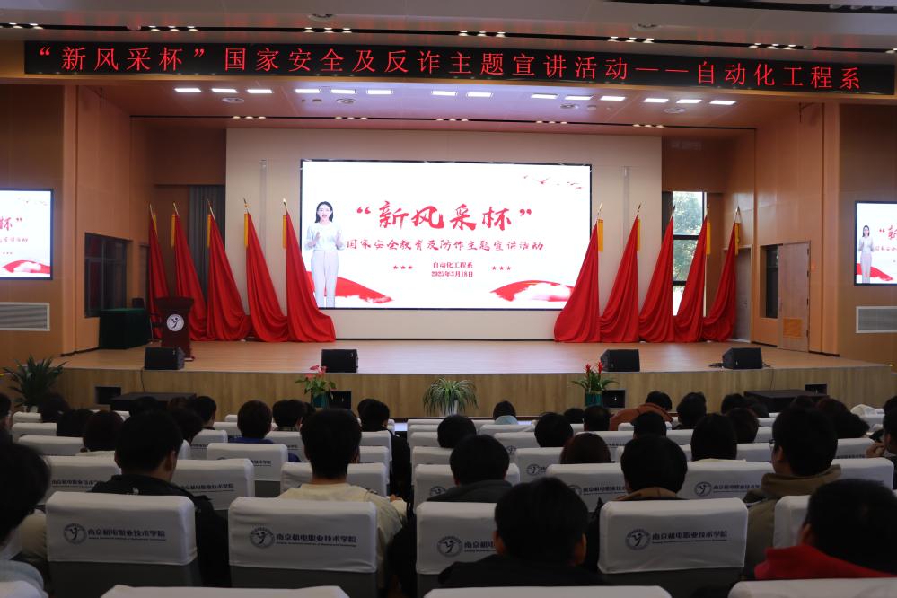 时值三月春光好,正是筑安正当时。为深入贯彻落实总体国家安全观,提升学生安全防范意识,3月18日,自动化工程系举办“新风采杯”国家安全教育暨防诈主题宣讲活动。活动面向全系班级学生干部、学生会成员、团委骨干及国家助学金获得者共计400余人,特别“邀请”数字人“南小安”担任主持人,通过“AI+教育”新模式开启安全教育新篇章。