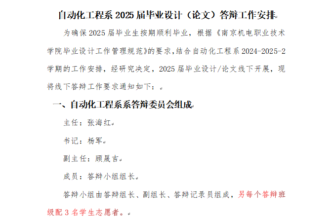此次会议的召开,明确了论文答辩工作的各项要求与标准,强化了教师的责任意识,为电气自动化技术专业学生论文答辩工作的顺利开展奠定了坚实基础。全体教师将以严谨的态度、专业的素养,助力学生在答辩中展现学习成果,为学生的学业生涯画上圆满句号,也为专业人才培养质量的持续提升贡献力量。