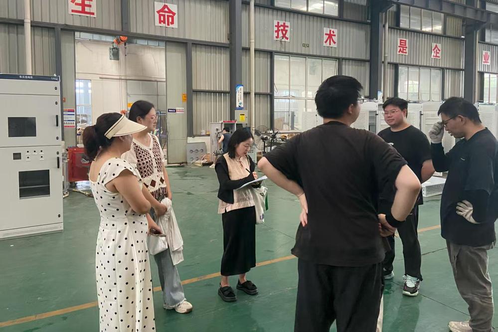 在江苏一变电力装备有限公司,走访小组实地察看实习生工作车间,与实习生亲切交流,询问其工作适应情况、技术难题及生活不便,特别叮嘱高温天气做好防暑降温,严守安全规程,保障自身安全。